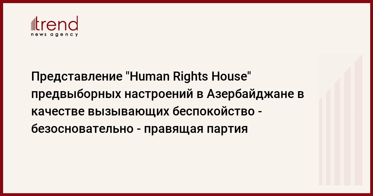 Представление "Human Rights House" предвыборных настроений в Азербайджане в качестве вызывающих беспокойство не имеет под собой оснований, сказал заместитель исполнительного секретаря правящей партии "Ени Азербайджан" (ПЕА), депутат Милли Меджлиса (парламента) Азербайджана Мубариз Гурбанлы в интервью официальному сайту ПЕА.