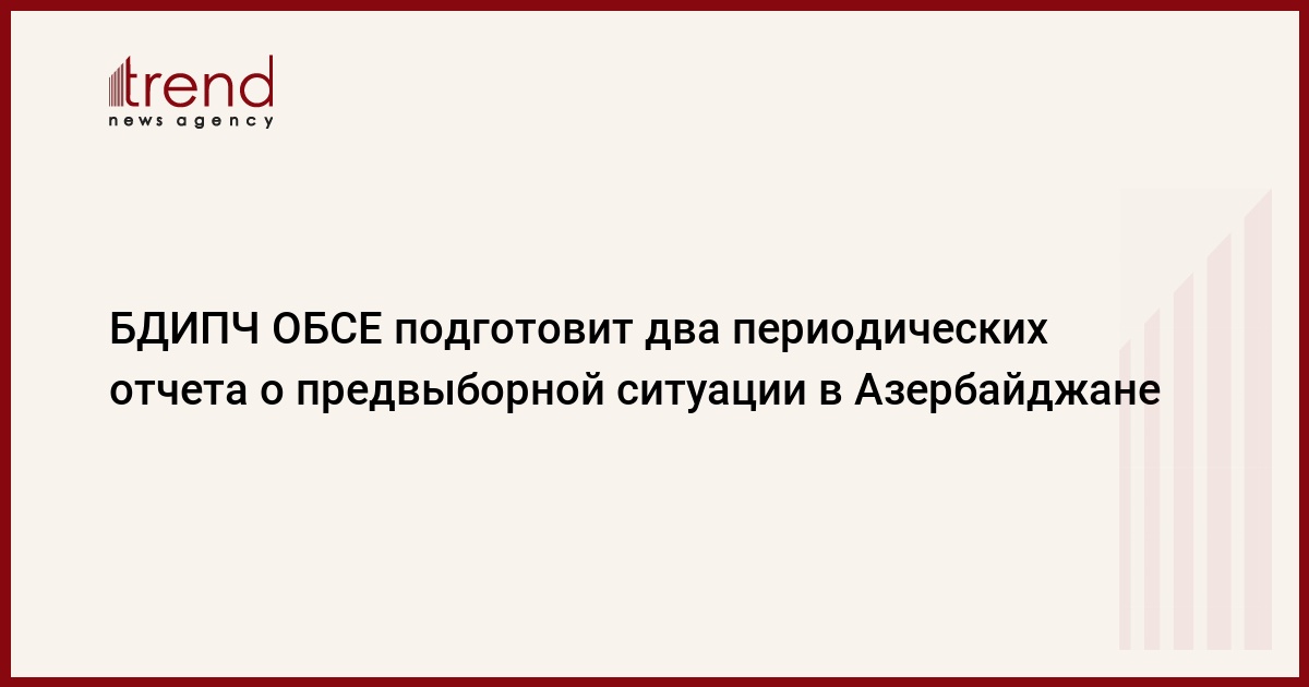Бюро по демократическим институтам и правам человека (БДИПЧ) ОБСЕ подготовит два периодических отчета о предвыборной ситуации в Азербайджане накануне президентских выборов.