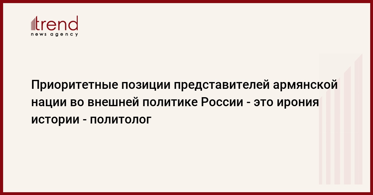 Является иронией истории то, что убившие российского посла, совершившие теракт в московском метро и причастные к развалу СССР представители армянской нации занимают приоритетные позиции во внешней политике России, сказал в среду на пресс-конференции директор Центра политических инноваций и технологий, политолог Мубариз Ахмедоглу.