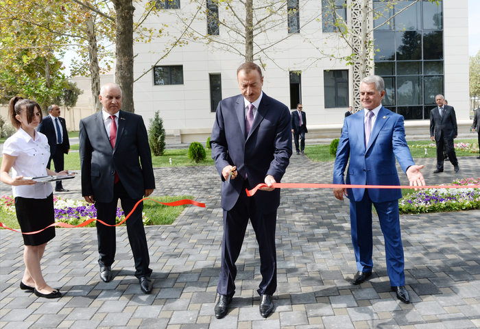 Президент Азербайджана Ильхам Алиев в рамках поездки в Билясувар в среду принял участие в открытии нового административного здания районной организации партии "Ени Азербайджан".