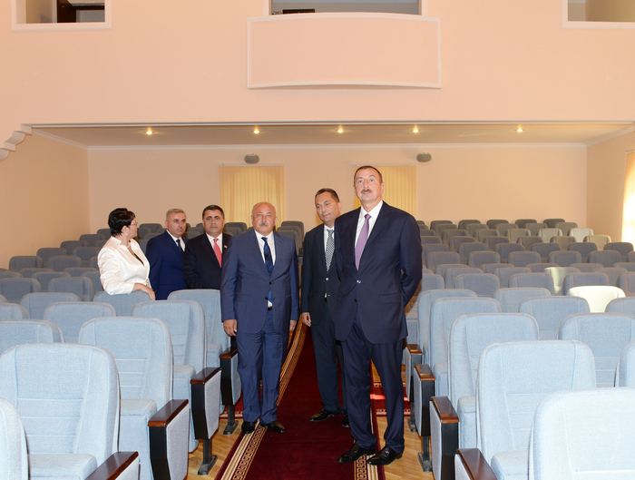 Главу государства проинформировали о том, что Центр культуры был построен в 1956 году. За время эксплуатации капитальный ремонт в этом учреждении культуры не производился. Здание общей площадью 7300 квадратных метров - трехэтажное. Капитальный ремонт этого главного культурного учреждения района был начат в 2011 году. Ремонтные работы проводились по линии Министерства культуры и туризма.