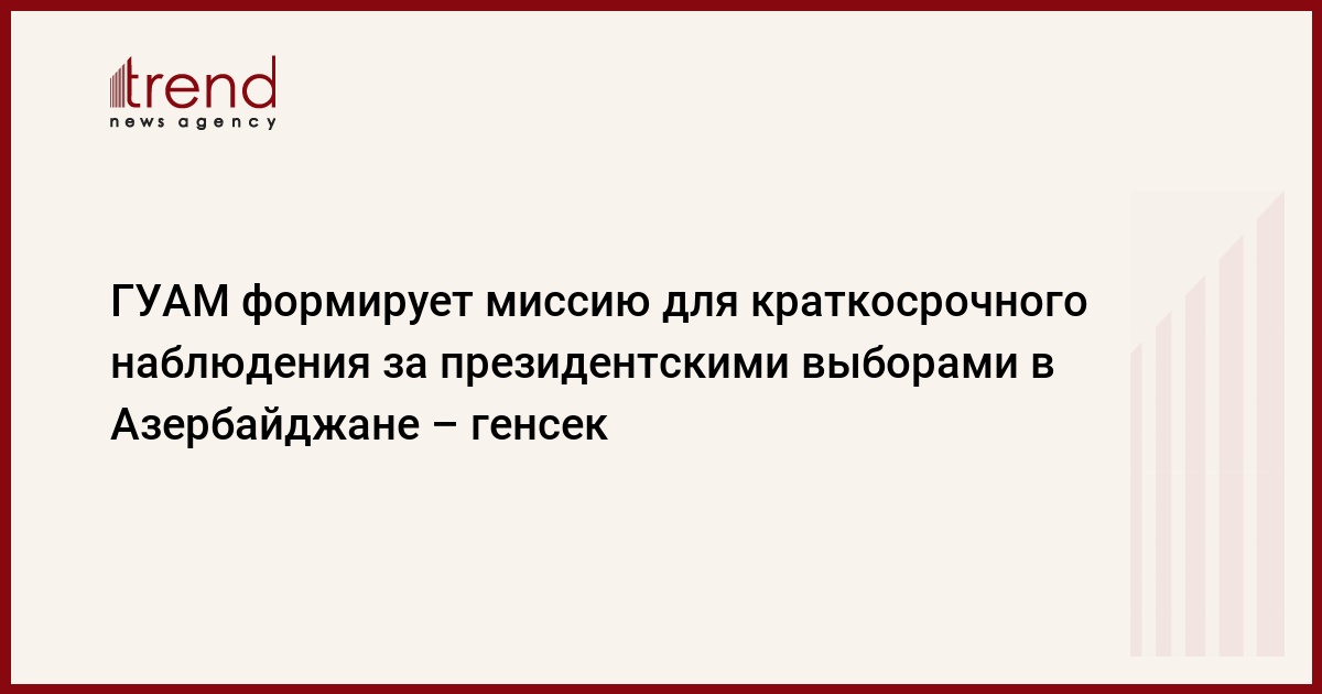 "Организация за демократию и экономическое развитие - ГУАМ" формирует миссию для краткосрочного наблюдения за президентскими выборами в Азербайджане, сказал в пятницу Trend генеральный секретарь организации Валерий Чечелашвили.