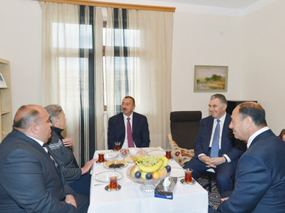 Президент Ильхам Алиев побеседовал с членами семьи за чайным столом.