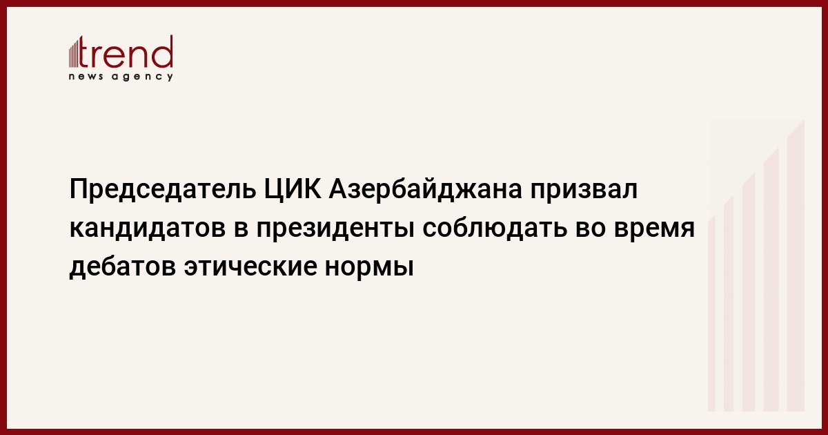 Председатель Центральной избирательной комиссии (ЦИК) Азербайджана Мазахир Панахов призвал кандидатов в президенты воздерживаться в ходе обсуждений в бесплатное эфирное время от оскорбительных заявлений в адрес других лиц.
