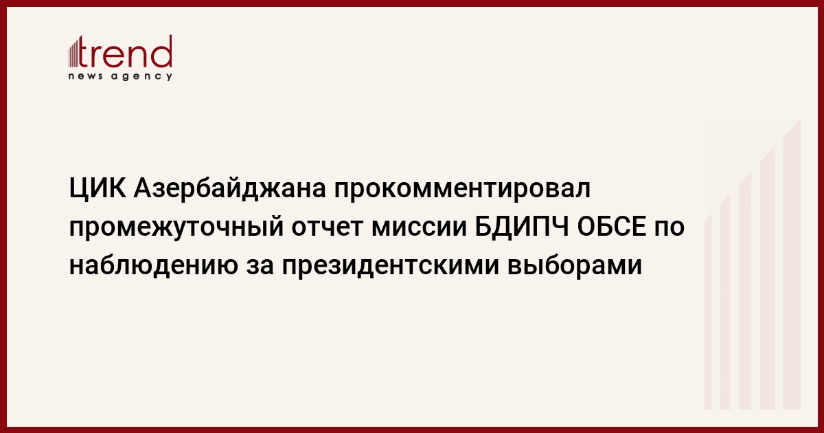 Центральная избирательная комиссия (ЦИК) Азербайджана выразила отношение к первому промежуточному отчету миссии Бюро демократических институтов и прав человека ОБСЕ (БДИПЧ ОБСЕ) по наблюдению за президентскими выборами.