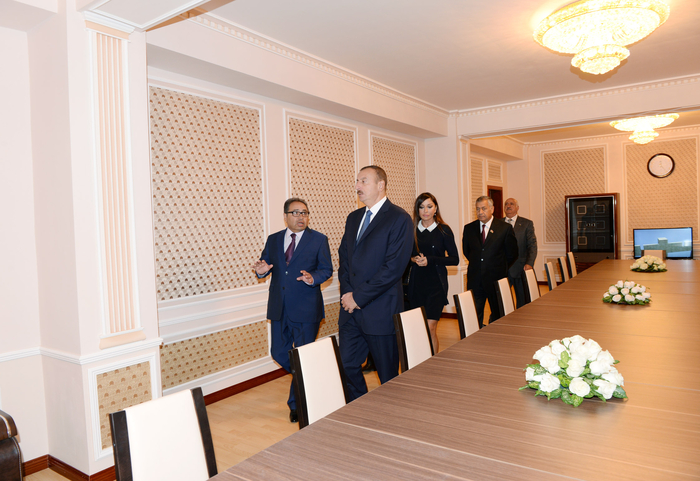 Глава государства и его супруга ознакомились с условиями, созданными в отеле центра. Было сообщено, что в центре на 400 человек созданы все условия для отдыха преподавателей и студентов университета. Комнаты для профессорско-преподавательского состава и студентов отвечают самым современным стандартам. Здесь созданы конференц-залы для проведения различных дебатов и мероприятий. В большом актовом зале созданы все условия для проведения различных мероприятий. Студенты и преподавательский состав могут воспользоваться услугами столовой на 300 мест. Спортивные залы оснащены современным оборудованием. Здесь можно заниматься различными видами спорта, имеются также условия для проведения ряда соревнований. В электронной библиотеке собрано большое количество литературы по различным областям. Кроме того, в учебно-практическом центре отдыха созданы лаборатории по разным направлениям. Все это создает преподавателям и студентам возможность для эффективного проведения производственной практики, организации местных и международных мероприятий.
