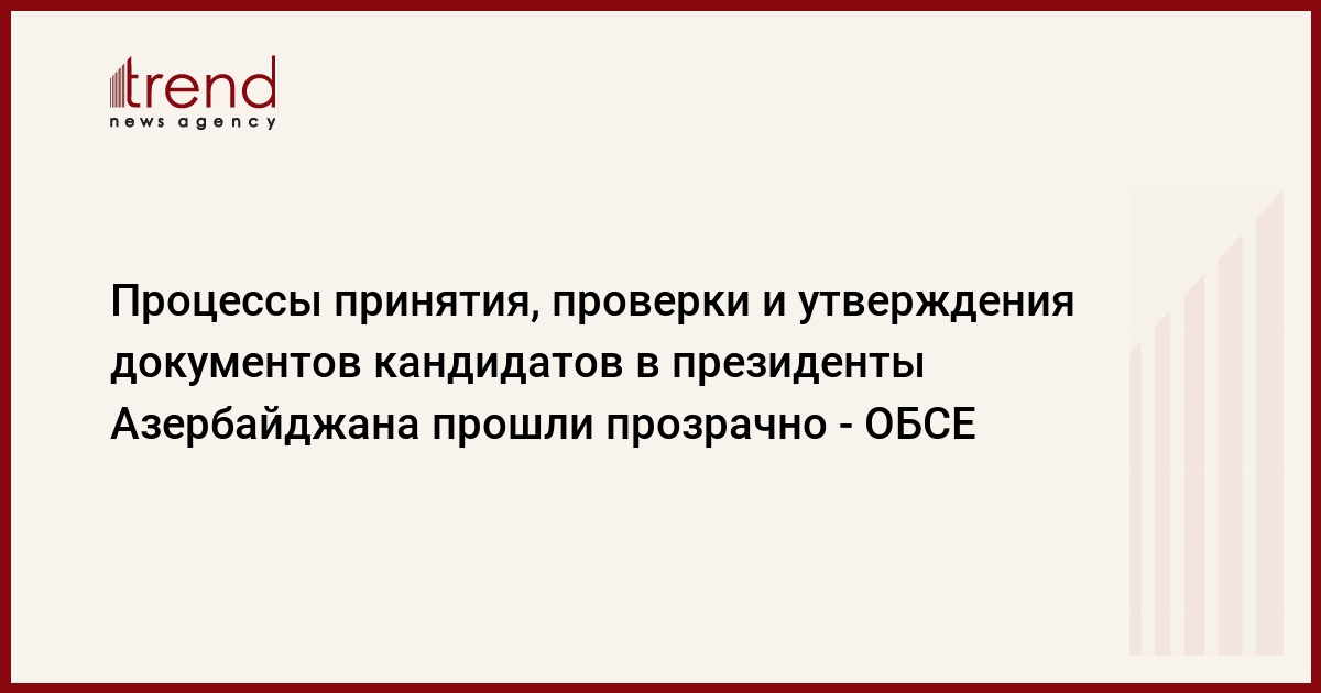 Руководитель Бакинского офиса ОБСЕ, посол Корай Таргай считает, что процессы принятия, проверки и утверждения документов кандидатов в президенты Азербайджана прошли прозрачно.