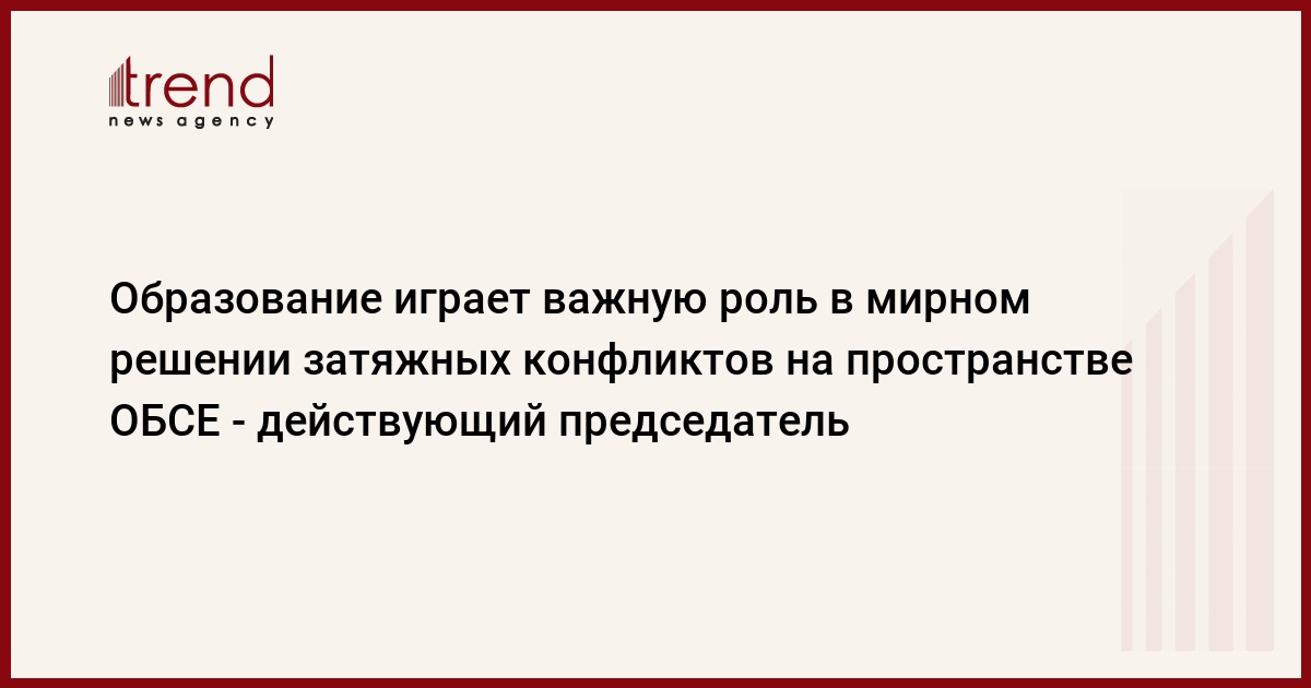 Действующий председатель ОБСЕ, глава МИД Украины Леонид Кожара подчеркнул важную роль образования в мирном урегулировании затяжных конфликтов на пространстве ОБСЕ, говорится в сообщении, распространенном в субботу на официальном сайте ОБСЕ.