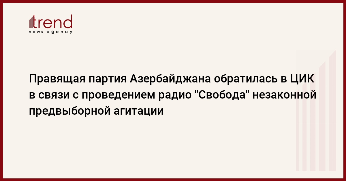 "Функционирующее в Азербайджане радио "Свобода", финансируемое иностранным государством, проводит в Азербайджане предвыборную агитацию, грубо нарушая требования Избирательного кодекса", - говорится в сообщении.