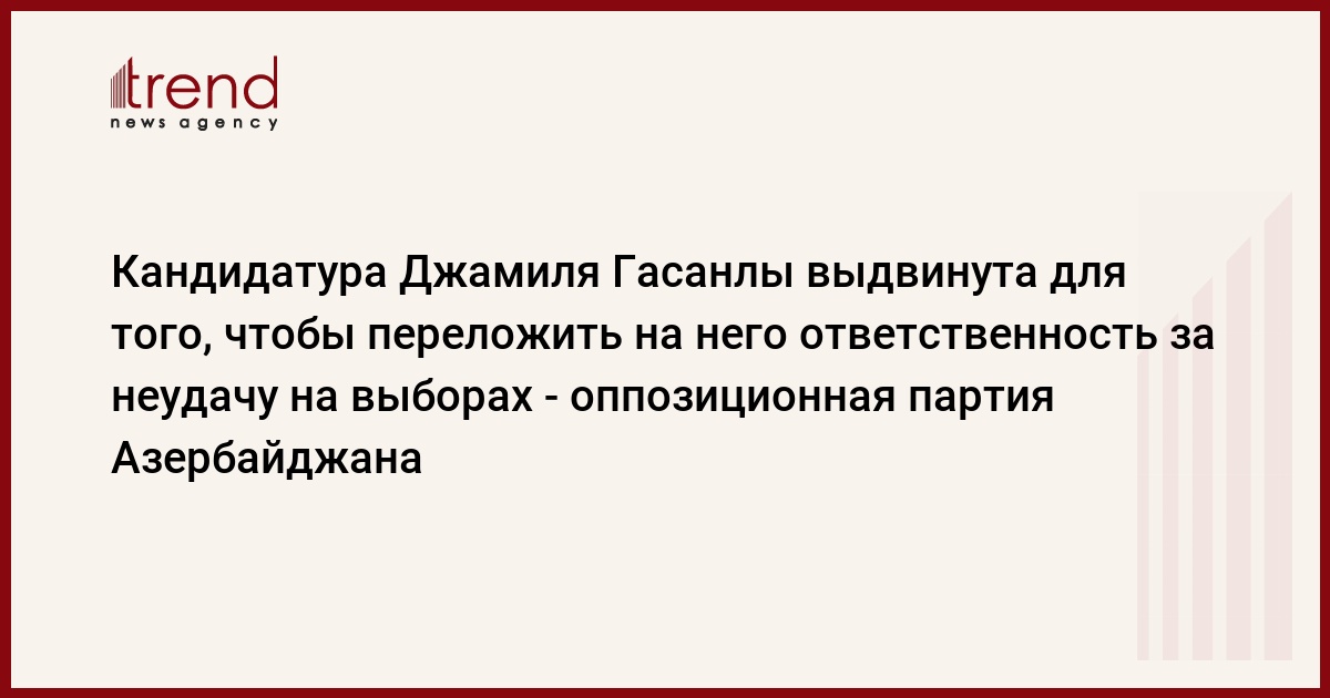 Кандидатура Джамиля Гасанлы была выдвинута для того, чтобы переложить на него все огрехи президентских выборов 2013 года. Об этом сказал в четверг Trend заместитель председателя Партии единого народного фронта Азербайджана (ПЕНФА) Ниямеддин Ордуханлы.