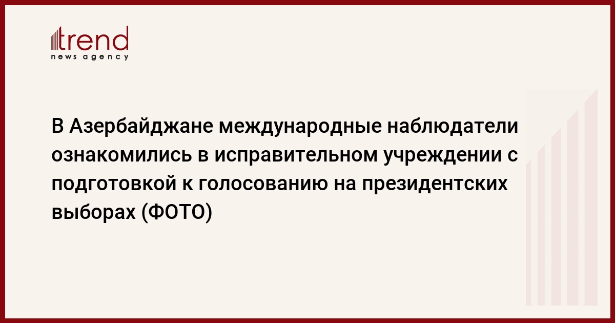 Международные наблюдатели, находящиеся в Азербайджане в связи с предстоящими президентскими выборами, посетили исправительное учреждение Пенитенциарной службы минюста, говорится во вторник в сообщении службы.