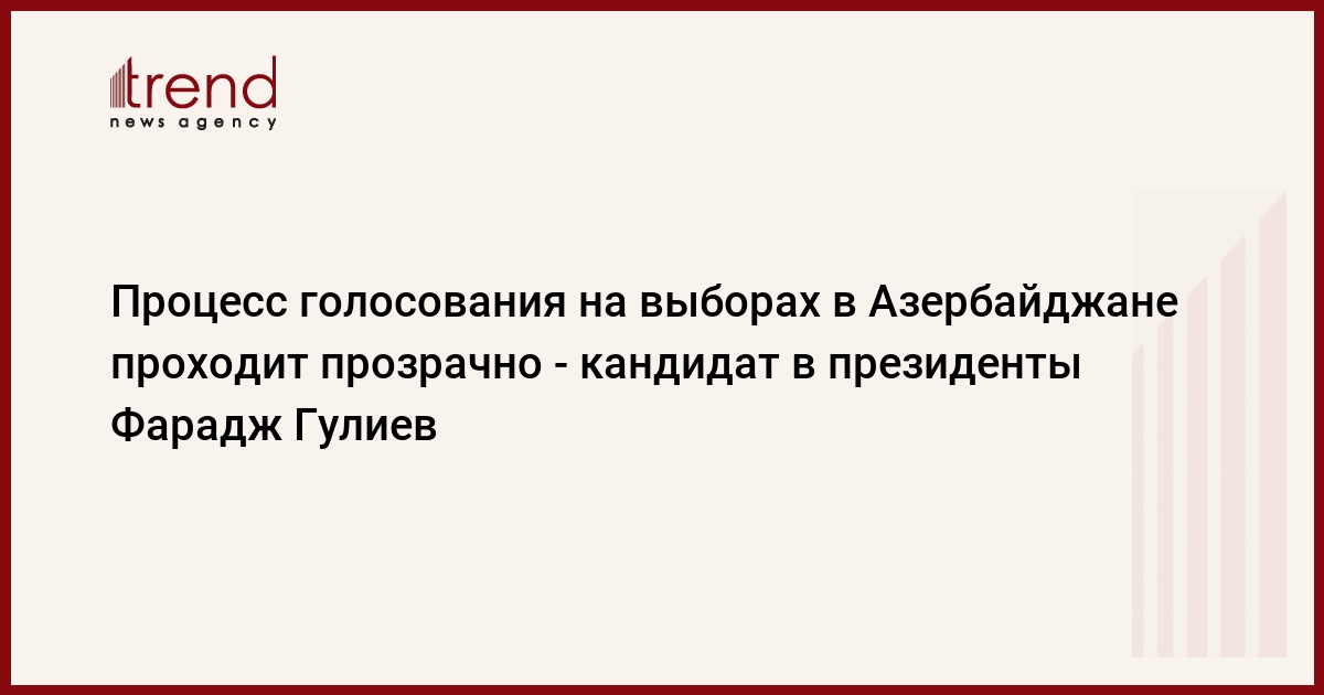 Каких-либо правонарушений в ходе голосования на президентских выборах до настоящего времени не наблюдалось. Об этом кандидат в президенты, председатель Партии национального возрождения Фарадж Гулиев сказал журналистам в среду после голосования на 25 избирательном участке 23 Насиминско-Сабаильского избирательного округа .