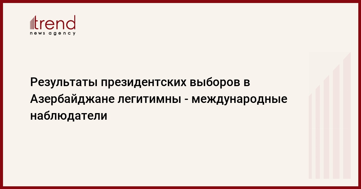Наблюдательная миссия "За справедливые выборы" приняла отчет, признающий легитимность президентских выборов в Азербайджане.