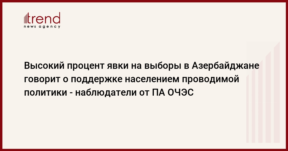 Атмосфера на избирательных участках в Азербайджане была очень хорошей, и с утра там были очереди из желающих проголосовать, сказала на пресс-конференции в четверг в Независимом пресс-центре член миссии наблюдателей от Парламентской ассамблеи Организации Черноморского сотрудничества (ПАЧЭС) Салия Мурзабалиева, представитель Госдумы России.