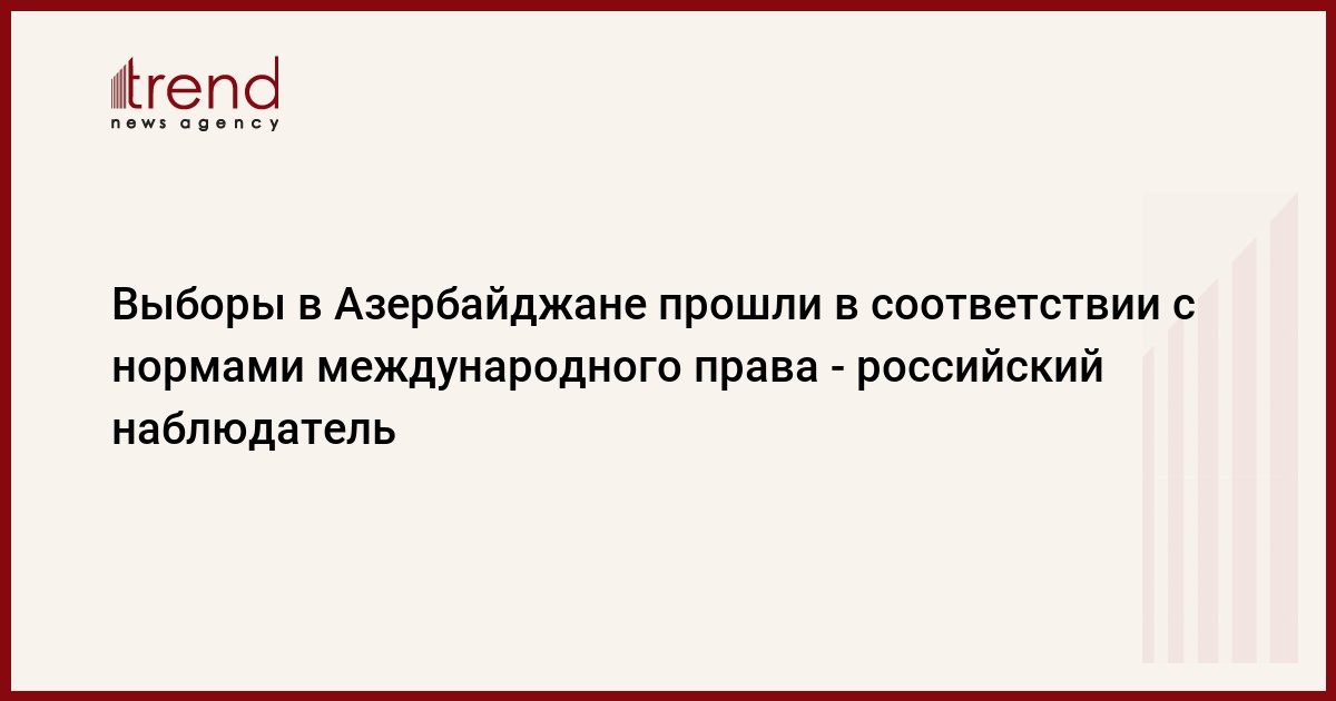 Выборы в Азербайджане прошли в соответствии с местным законодательством и нормами международного права, сказал в четверг в ходе пресс-конференции по итогам президентских выборов в Азербайджане заместитель председателя межкомиссионной рабочей группы по международному сотрудничеству и общественной дипломатии Общественной палаты России Сергей Марков.