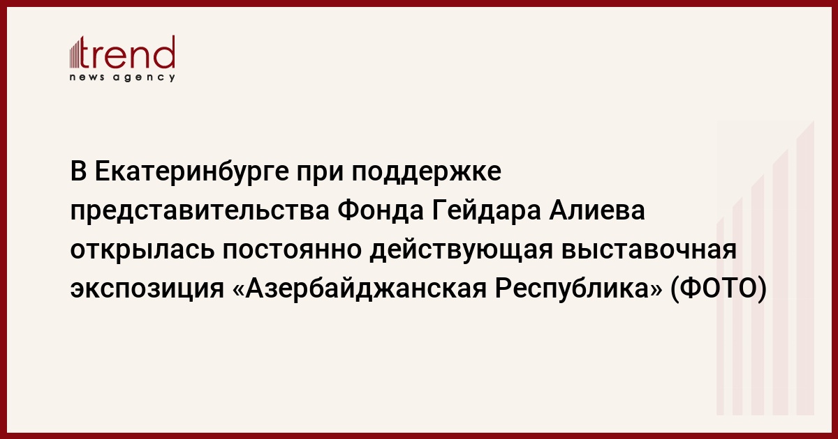 16 октября в библиотеке главы Екатеринбурга при поддержке представительства Фонда Гейдара Алиева в Российской Федерации состоялась церемония открытия постоянно действующей выставочной экспозиции "Азербайджанская Республика", сообщает АзерТАдж.