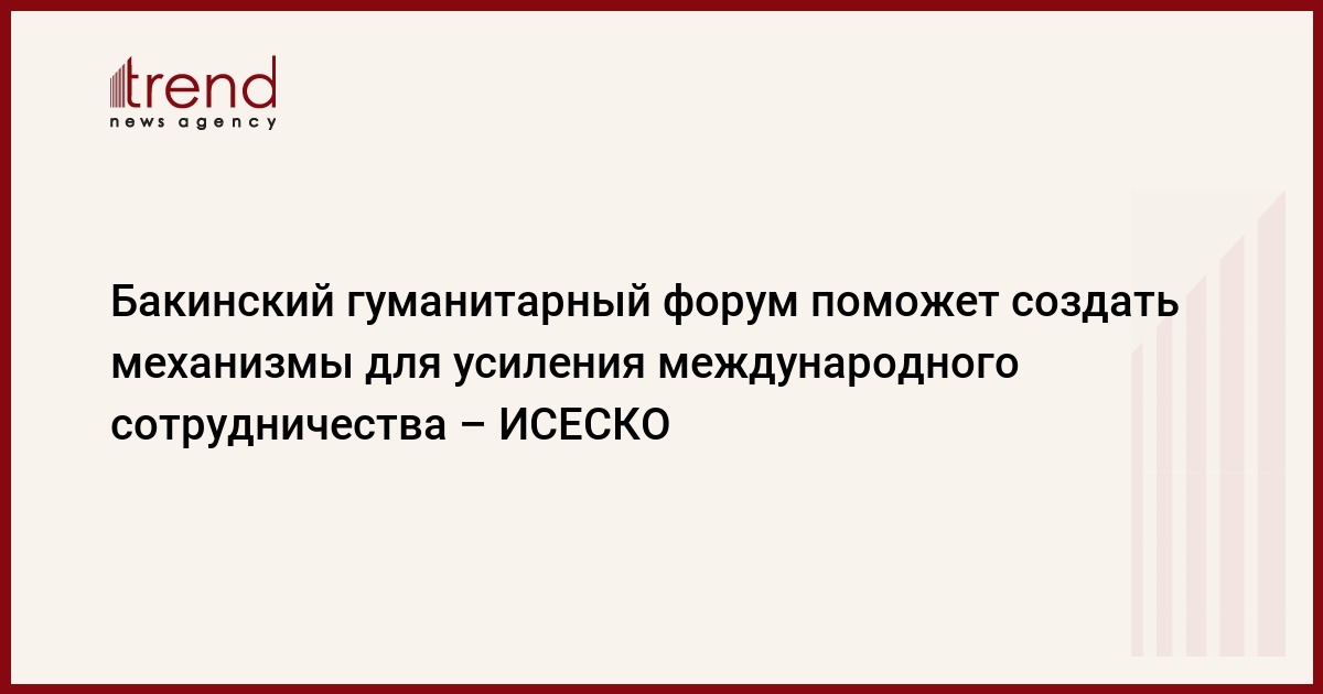 Бакинский международный гуманитарный форум поможет создать механизмы для усиления международного сотрудничества, сказал Генеральный директор ИСЕСКО, доктор Абдель-Азиз бен Осман ат-Туэйджри на открытии форума в четверг.