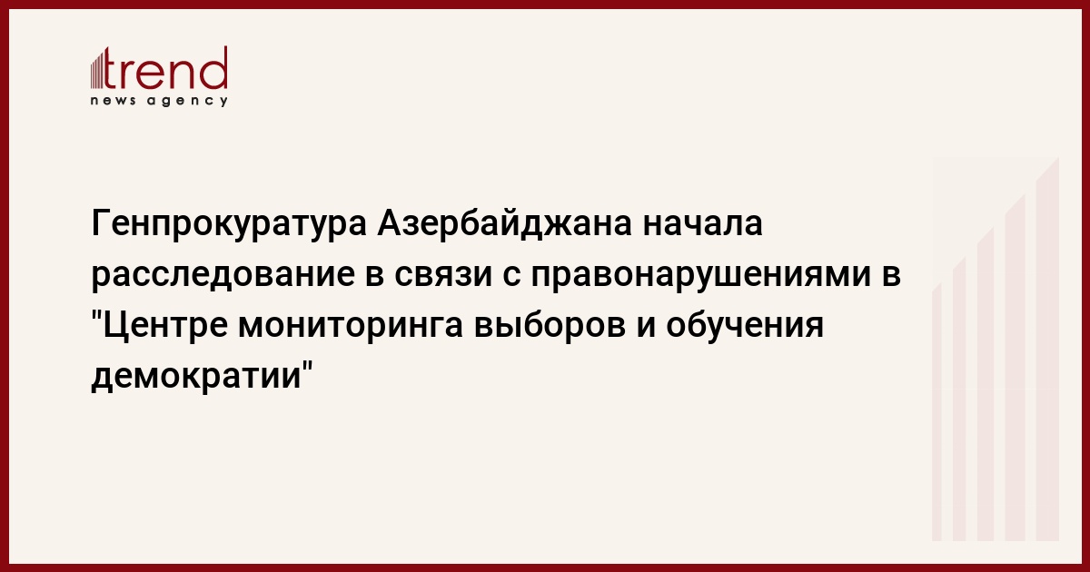 Следственное управление Генпрокуратуры Азербайджана приступило к расследованию в связи с правонарушениями, допущенными в "Центре мониторинга выборов и обучения демократии", говорится в сообщении пресс-службы Генпрокуратуры, распространенном в пятницу.