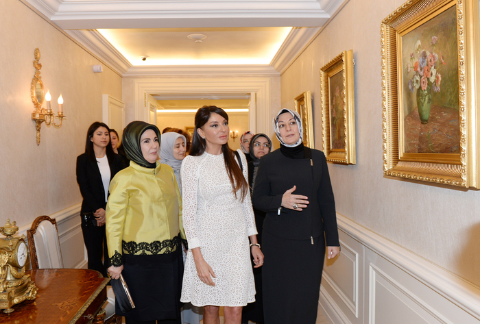 Вначале первая леди Азербайджана Мехрибан Алиева, супруга Президента Турции Абдуллаха Гюля Хайруннисе Гюль и супруга премьер-министра Турции Реджепа Тайиба Эрдогана Эмине Эрдоган совершили прогулку по дворцу Чанкая и осмотрели украшающие его произведения живописи.