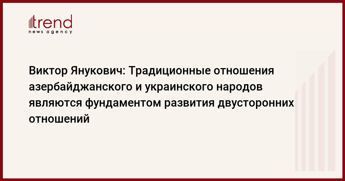 Традиционные отношения азербайджанского и украинского народов для нас являются фундаментом развития наших двусторонних отношений, отметил Президент Виктор Янукович.