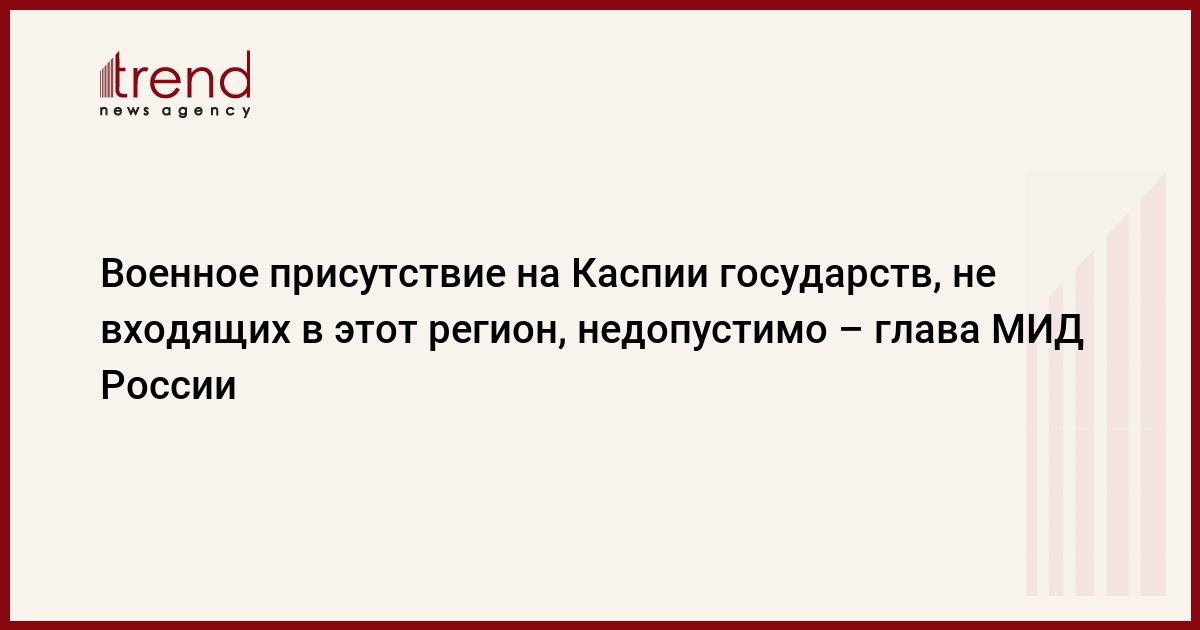 Военное присутствие на Каспийском море государств, не входящих в этот регион, недопустимо. Об этом заявил в четверг министр иностранных дел России Сергей Лавров на открытии 34-го заседания специальной рабочей группы по определению правового статуса Каспия, передает ИТАР-ТАСС.