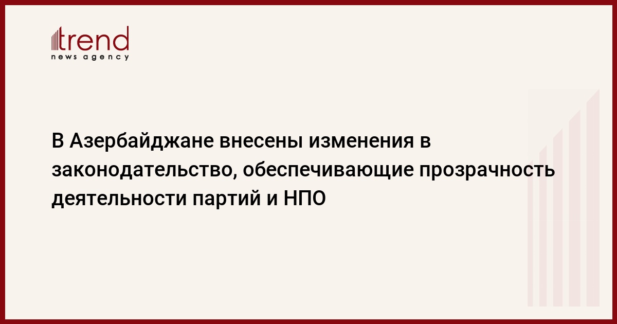 Целью вносимых дополнений и изменений является обеспечение прозрачности деятельности данных организаций и национальной безопасности страны. Об этом сказал председатель комитета по правовой политике и государственному строительству Милли Меджлиса Али Гусейнли, сообщая об изменениях в законодательство.
