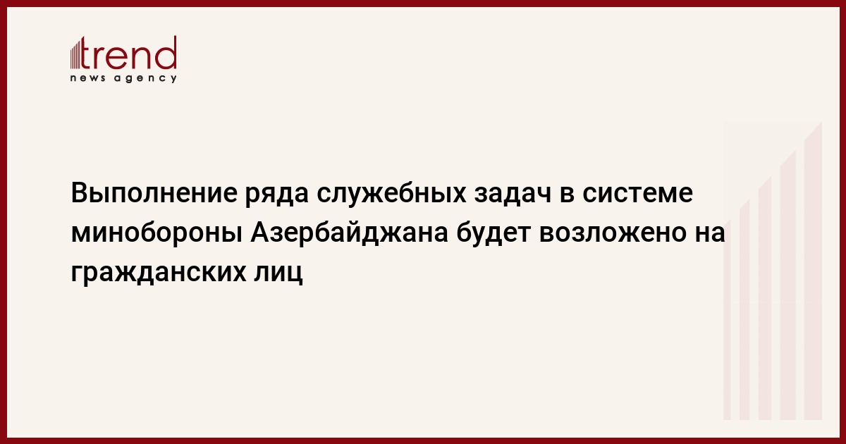 Выполнение ряда служебных задач в воинских частях Вооруженных сил и других учреждениях, находящихся в подчинении министерства обороны Азербайджана, поэтапно будет поручено гражданским лицам. Об этом сказал в пятницу Trend начальник пресс-службы министерства, полковник-лейтенант Вагиф Дергахлы.