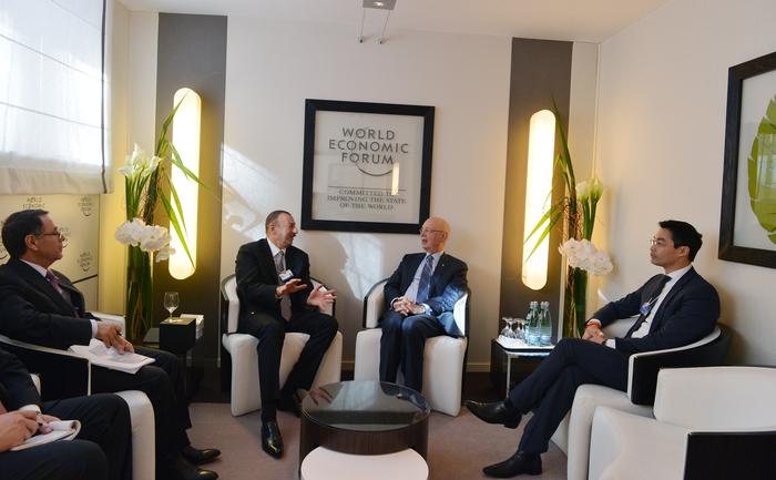 Президент Азербайджана Ильхам Алиев в четверг встретился в Давосе с исполнительным председателем Всемирного экономического форума Клаусом Швабом.