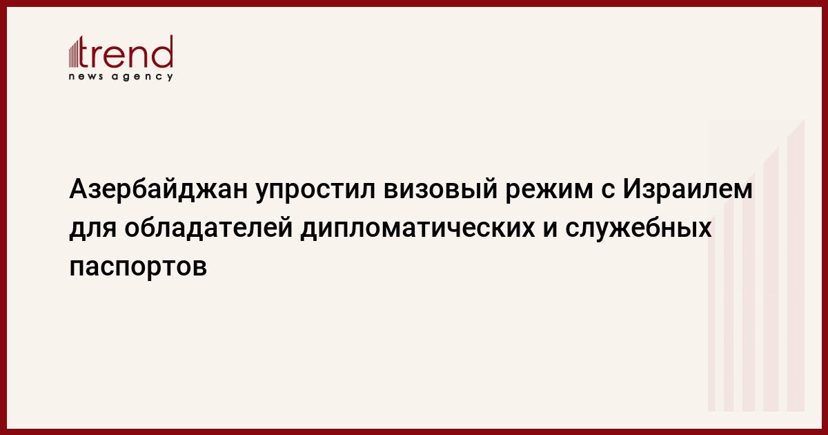 Милли Меджлис (парламент) Азербайджана в понедельник утвердил документ, предусматривающий упрощение визового режима между Израилем и Азербайджаном для лиц, обладающих дипломатическими и служебными паспортами.