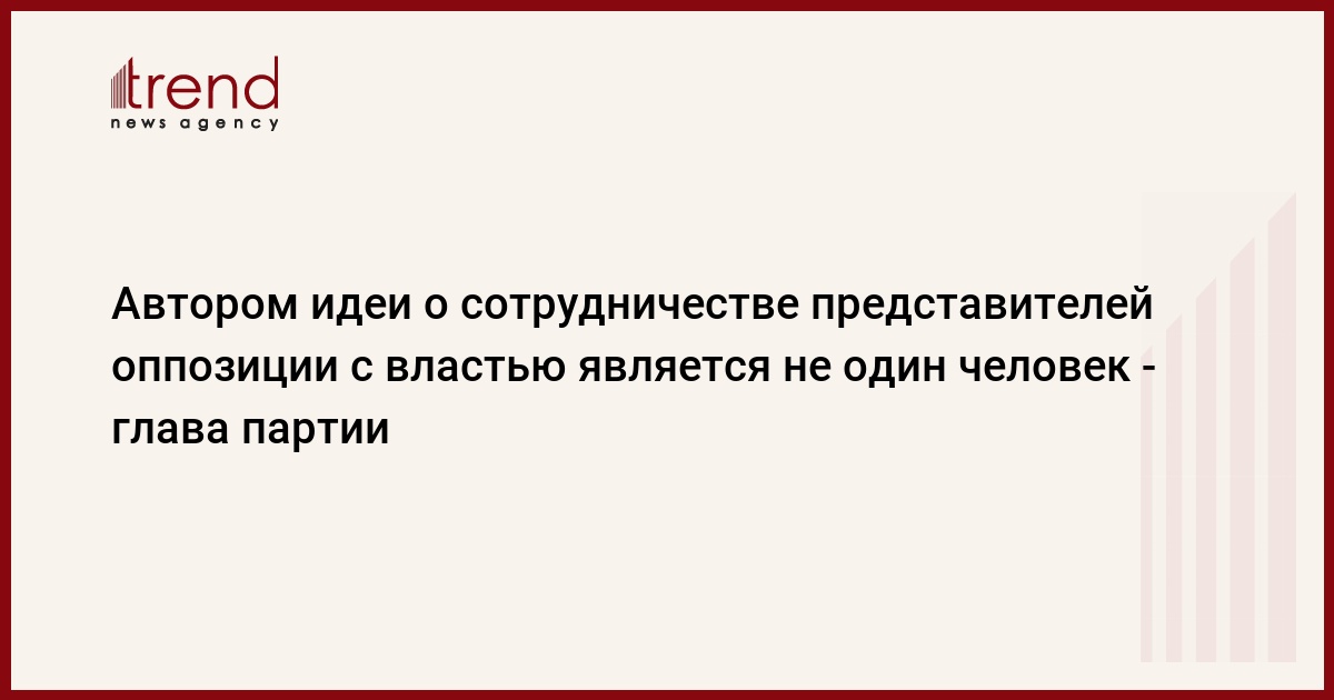 Автором идеи о сотрудничестве представителей оппозиции с властью является не один человек, за ней стоят многие. Об этом сказал в четверг Trend председатель Партии классического народного фронта Азербайджана Мирмахмуд Фаттаев.