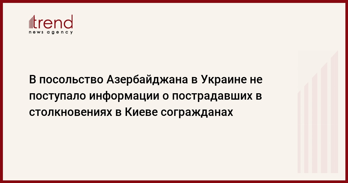 В посольство Азербайджана в Украине не поступало информации о пострадавших в столкновениях в Киеве гражданах Азербайджана, сообщил в среду Trend первый секретарь посольства Асим Османов.