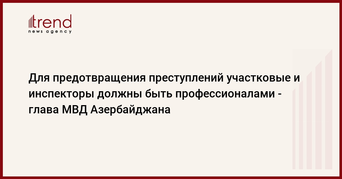Усубов отметил, что для своевременного предотвращения преступлений нужно, чтобы сотрудники полиции, в том числе участковые и инспекторы, обладали широким мировоззрением, умением работать с новыми технологиями и в целом высоким профессионализмом. Он также отметил, что просветительскую работу, которая имеет большое значение в деле профилактики, нужно вести с помощью членов общественных советов, гражданского общества и СМИ, совместно с религиозными деятелями, работниками учебных и медицинских заведений.