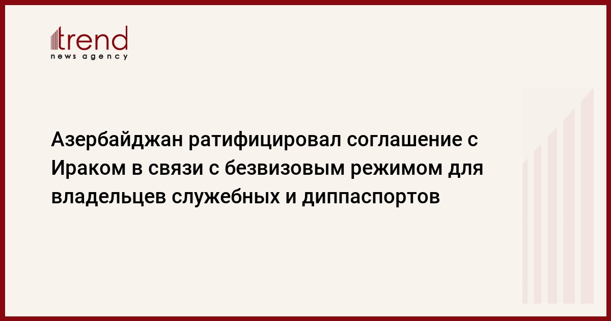 На заседании Милли Меджлиса (парламент) Азербайджана в пятницу было утверждено соглашение между правительствами Азербайджана и Ирака о безвизовом въезде-выезде лиц, обладающих дипломатическими, специальными и служебными паспортами.