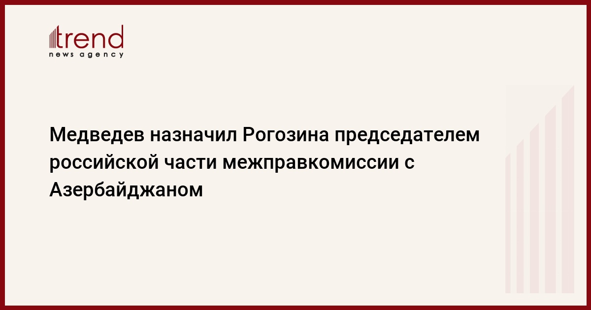 Премьер-министр России Дмитрий Медведев подписал распоряжение о назначении вице-премьера Дмитрия Рогозина председателем российской части межправительственной комиссии с Азербайджаном, передает ИТАР-ТАСС.