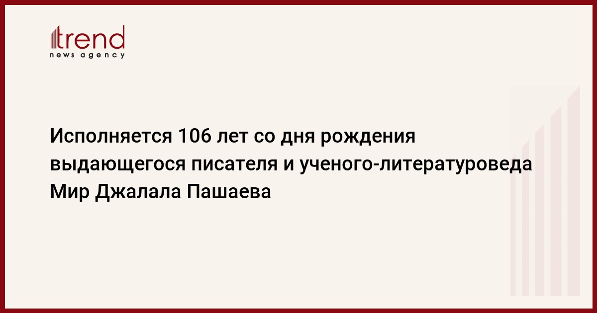 Сегодня исполняется 106 лет со дня рождения выдающегося писателя и ученого-литературоведа, внесшего неоценимый вклад в развитие азербайджанской литературы, науки и образования Мир Джалала Пашаева.