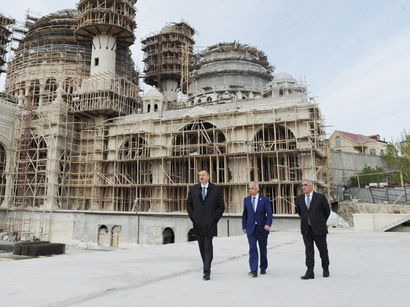 Президент Азербайджана Ильхам Алиев в субботу ознакомился с ходом строительных работ, проводимых в новом комплексе мечети, который строится на территории Бинагадинского района Баку.