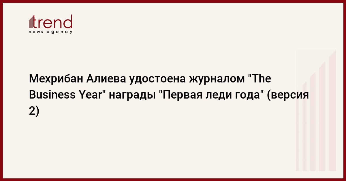 Первая леди Азербайджана, депутат Милли Меджлиса, президент Фонда Гейдара Алиева и Фонда друзей культуры Азербайджана, посол доброй воли ЮНЕСКО и ИСЕСКО Мехрибан Алиева объявлена "Первой леди года" в мире за активное участие в общественной, социальной и культурной жизни Азербайджана, значимый вклад в динамичное развитие общества, неоценимые заслуги в сфере пропаганды культуры Азербайджана в мире, всестороннюю поддержку работы по защите и сохранению всемирного культурного наследия, верность принципам социальной справедливости и гуманизма.
