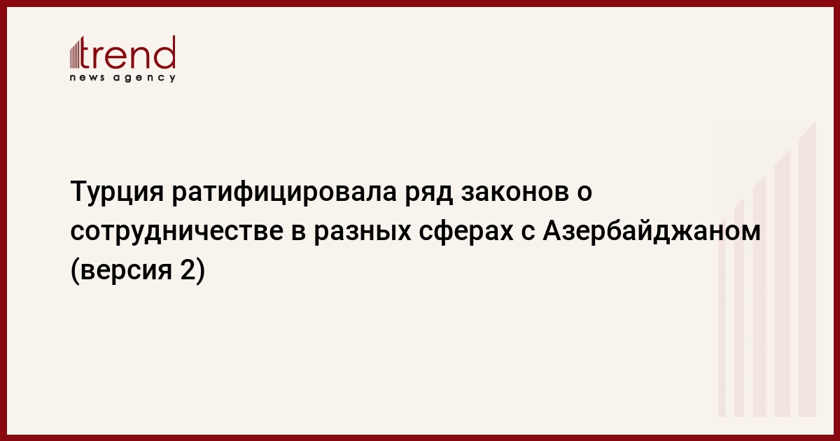 Турция ратифицировала ряд законов о сотрудничестве в разных сферах с Азербайджаном, говорится в сообщении, опубликованном в субботу на сайте "Resmi Gazete".
