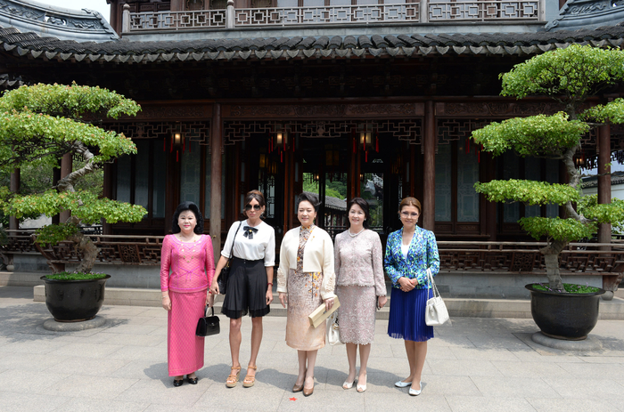 В рамках рабочего визита Президента Азербайджанской Республики Ильхама Алиева в Китайскую Народную Республику 21 мая первая леди Мехрибан Алиева вместе с супругами глав государств побывала в парке "Юй Юань" в Шанхае.
