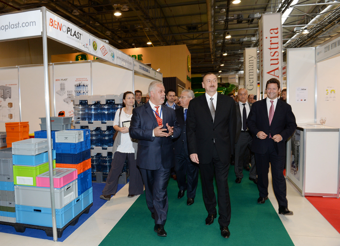 Президент Азербайджана Ильхам Алиев в четверг ознакомился в Бакинском выставочном центре с ХХ Азербайджанской международной выставкой пищевой промышленности WorldFood Azerbaijan-2014 и VIII Азербайджанской международной сельскохозяйственной выставкой AgriHort Azerbaijan - 2014.