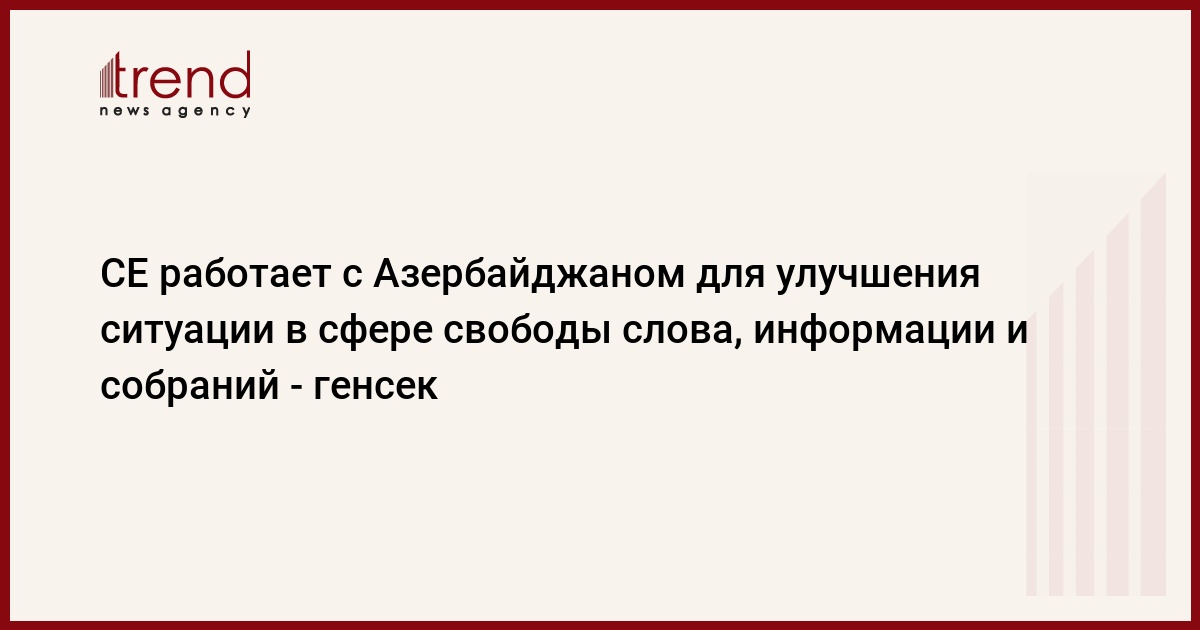 Совет Европы работает с Азербайджаном для улучшения ситуации в сфере свободы слова, информации и собраний. Об этом сказал в четверг журналистам в Баку генсек Совета Европы Турбьерн Ягланд.