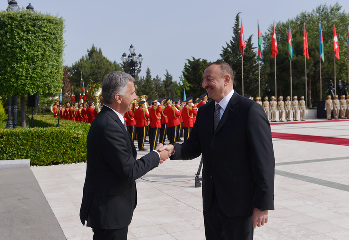 Начальник почетного караула отдал рапорт Президенту Ильхаму Алиеву.