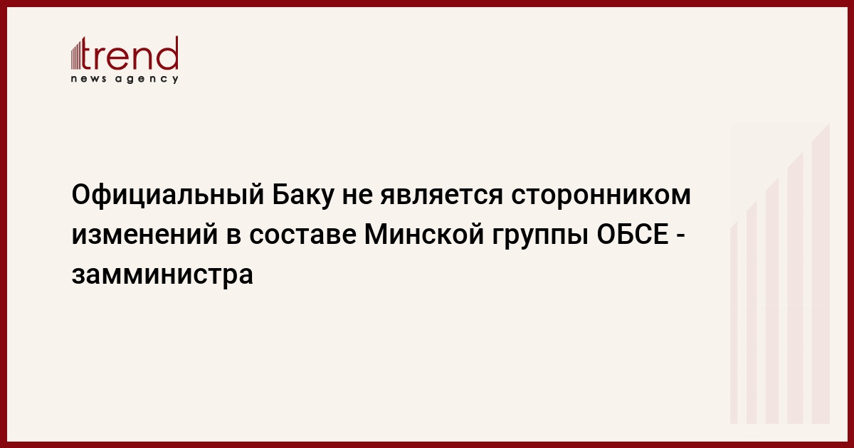 БАКУ /Trend/ - Министерство иностранных дел Азербайджана не является сторонником изменений в составе Минской группы ОБСЕ. Об этом в среду журналистам сказал заместитель министра иностранных дел Азербайджана Араз Азимов.