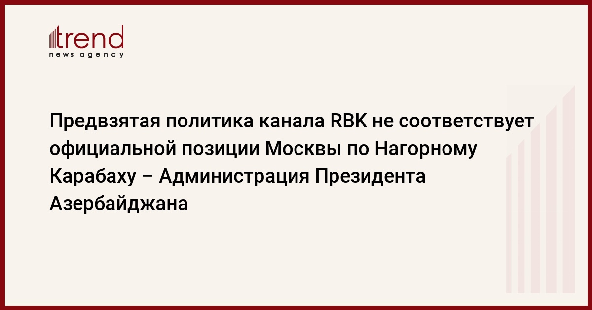 БАКУ /Trend/ - Заместитель руководителя Администрации Президента Азербайджана, завотделом внешних связей Новруз Мамедов обвинил российский канала RBK в предвзятой политике, которая не соответствует позиции Москвы по Нагорному Карабаху.