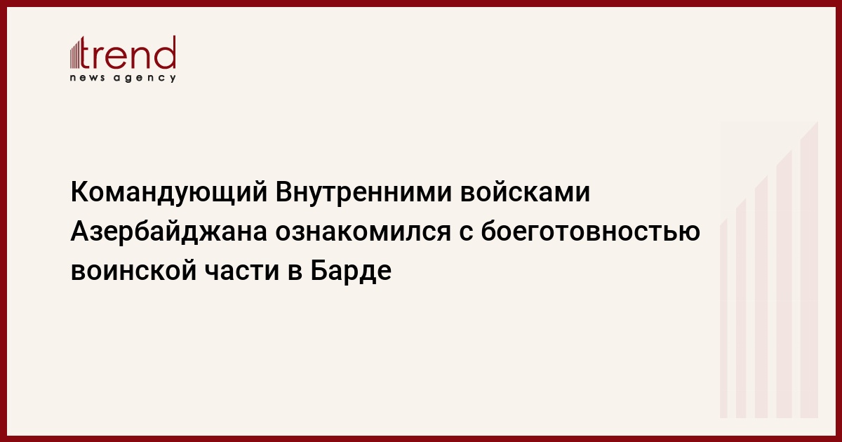 БАКУ /Trend/ - Командующий Внутренними войсками (ВВ) генерал-майор Шахин Мамедов посетил с целью проверки уровня выполнения служебно-боевых задач №-скую воинскую часть в Барде. Об этом говорится в сообщении пресс-службы Внутренних войск, распространенном в пятницу