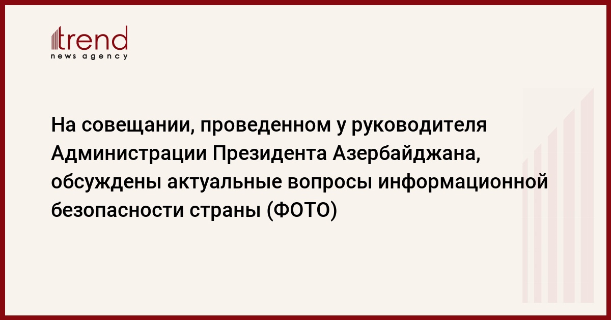 Руководитель Администрации Президента Рамиз Мехтиев выступил на совещании с обширным докладом. Он отметил, что основная цель совещания, проводимого с участием руководителей средств массовой информации и официальных лиц государственных органов, - обсудить ряд актуальных вопросов информационной безопасности Азербайджанской Республики и провести обмен мнениями по теме.