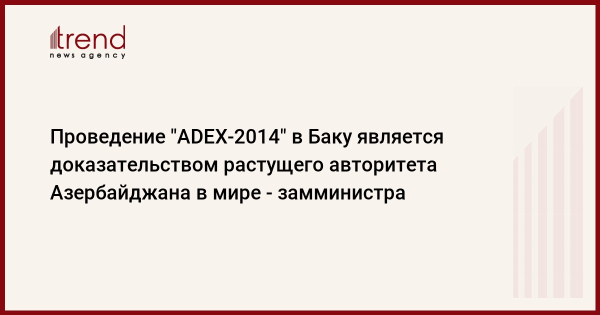 БАКУ /Trend/ - Авторитет Азербайджана во всем мире растет, и проведение в Баку выставки "ADEX-2014" является наглядным тому доказательством.
