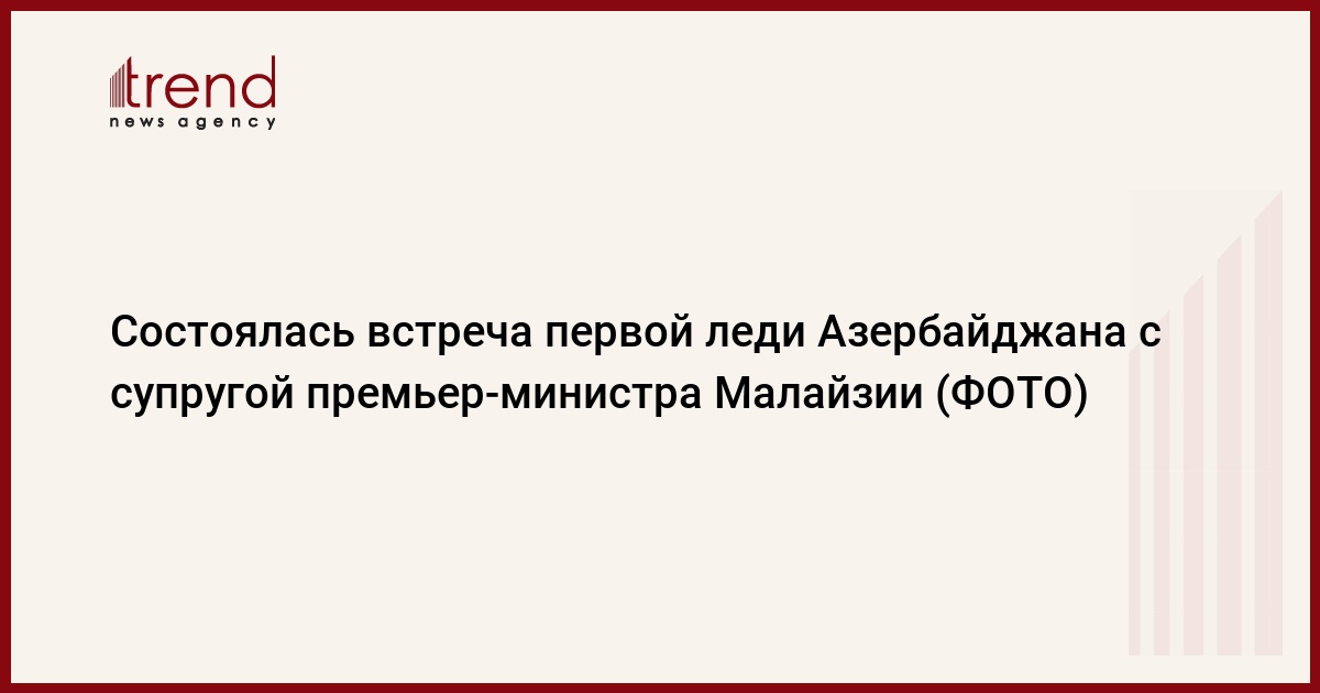 БАКУ /Trend/ - В пятницу в Баку состоялась встреча первой леди Азербайджана Мехрибан Алиевой с супругой премьер-министра Малайзии Мохаммада Наджиб Тун Абдул Разака Датин Падука Сери Росмах Мансор.