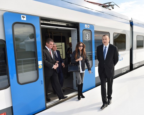 Президент Ильхам Алиев и его супруга Мехрибан Алиева ознакомились с вагонами, производимыми на заводе компании "Stadler Rail Group" в Минске.