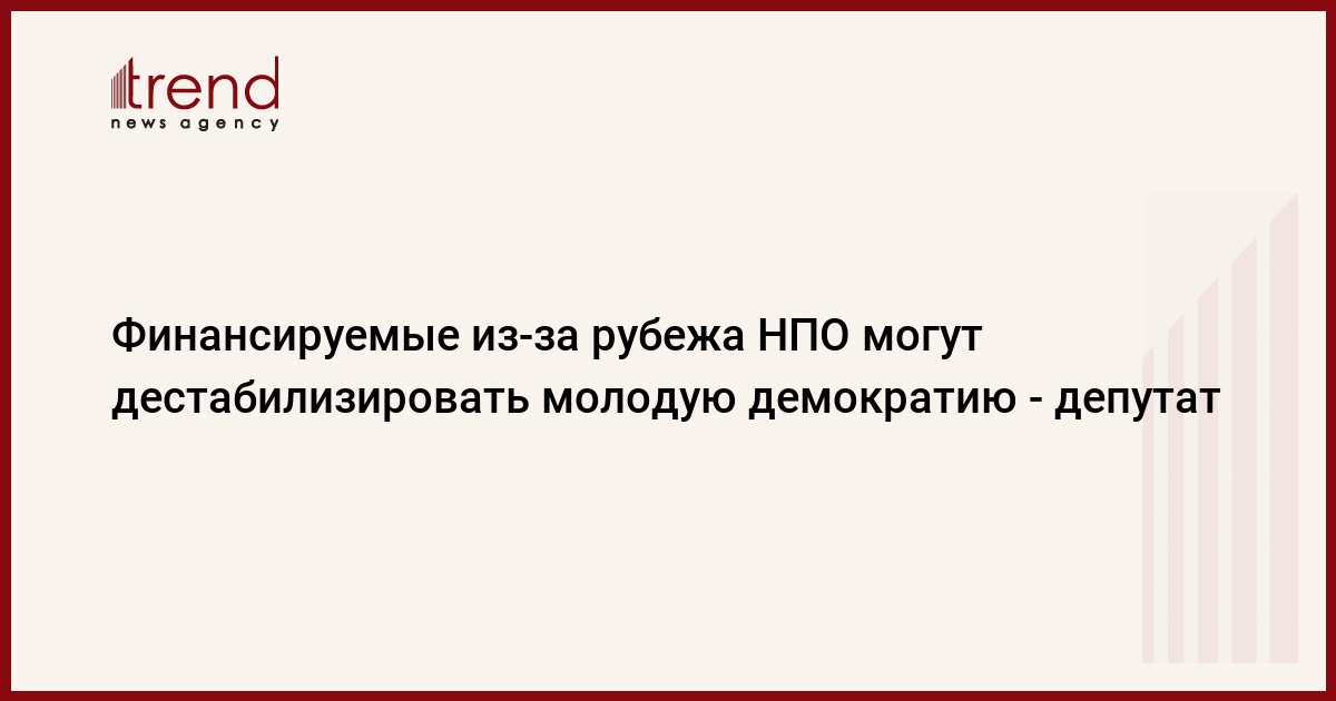 НПО с помощью "благодетелей" из-за рубежа могут дестабилизировать молодую демократию, и демократиям зрелым необходимо помнить об этом, подчеркнул депутат.